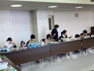 花・葉・虫を描きました。花はかわいらしく「ありがとう」、葉っぱ「はっぱもかがやいている」と、受講生がそれぞれに感じることを絵にして伝えることができました。