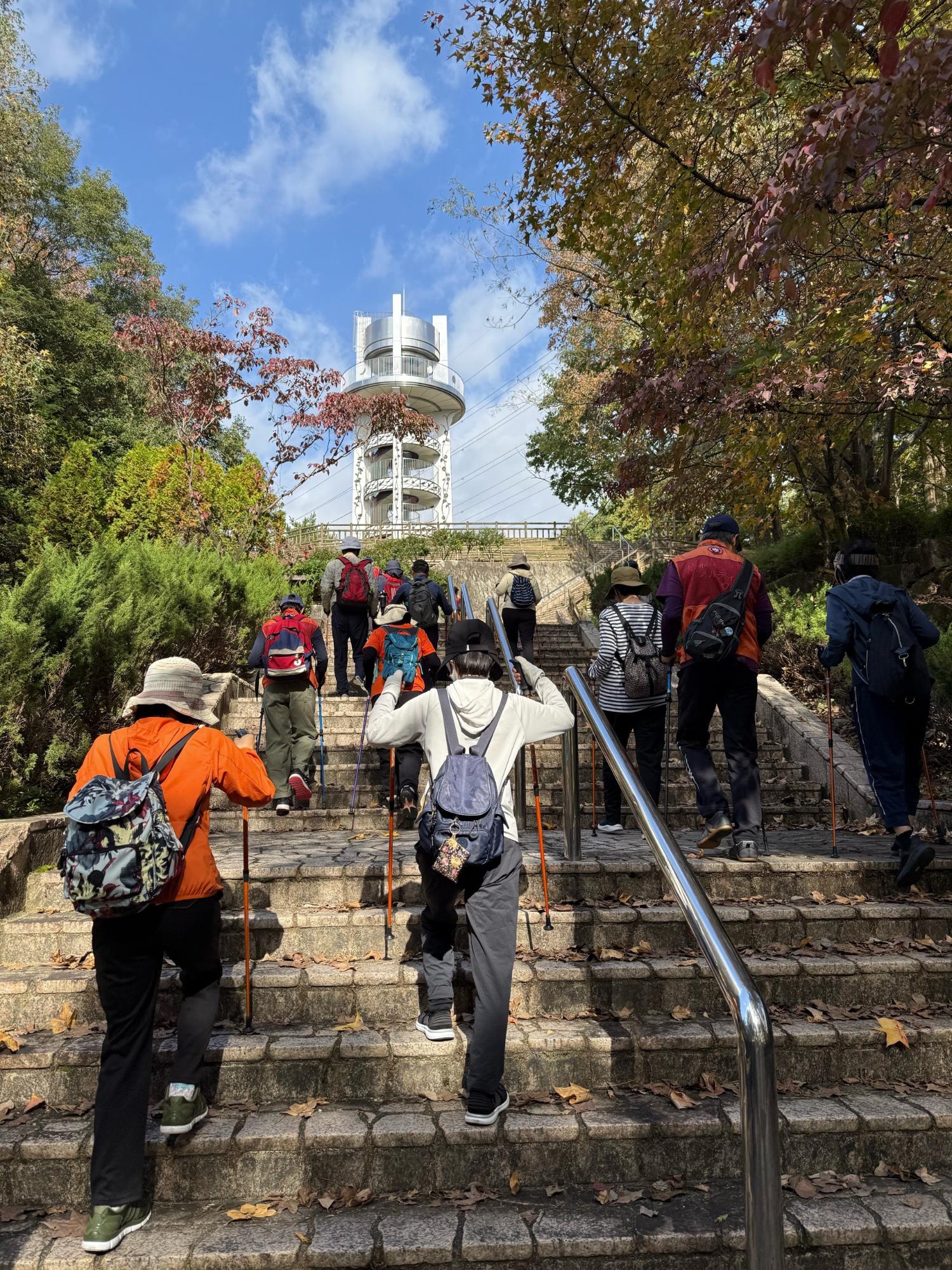 全日本ノルディックウォーク連盟公認指導員の指導のもと、参加者13名が2コースに分かれ小牧山を歩きました。