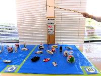 ペットボトル・牛乳パック等で作った川と海の生き物を竹の釣竿で釣り上げます。川と海の中にあるゴミを釣り上げて分別にチャレンジ。