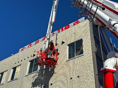高層ビルやマンションにおいて火災が発生した場合、はしごを利用した救出活動や放水活動を行います。