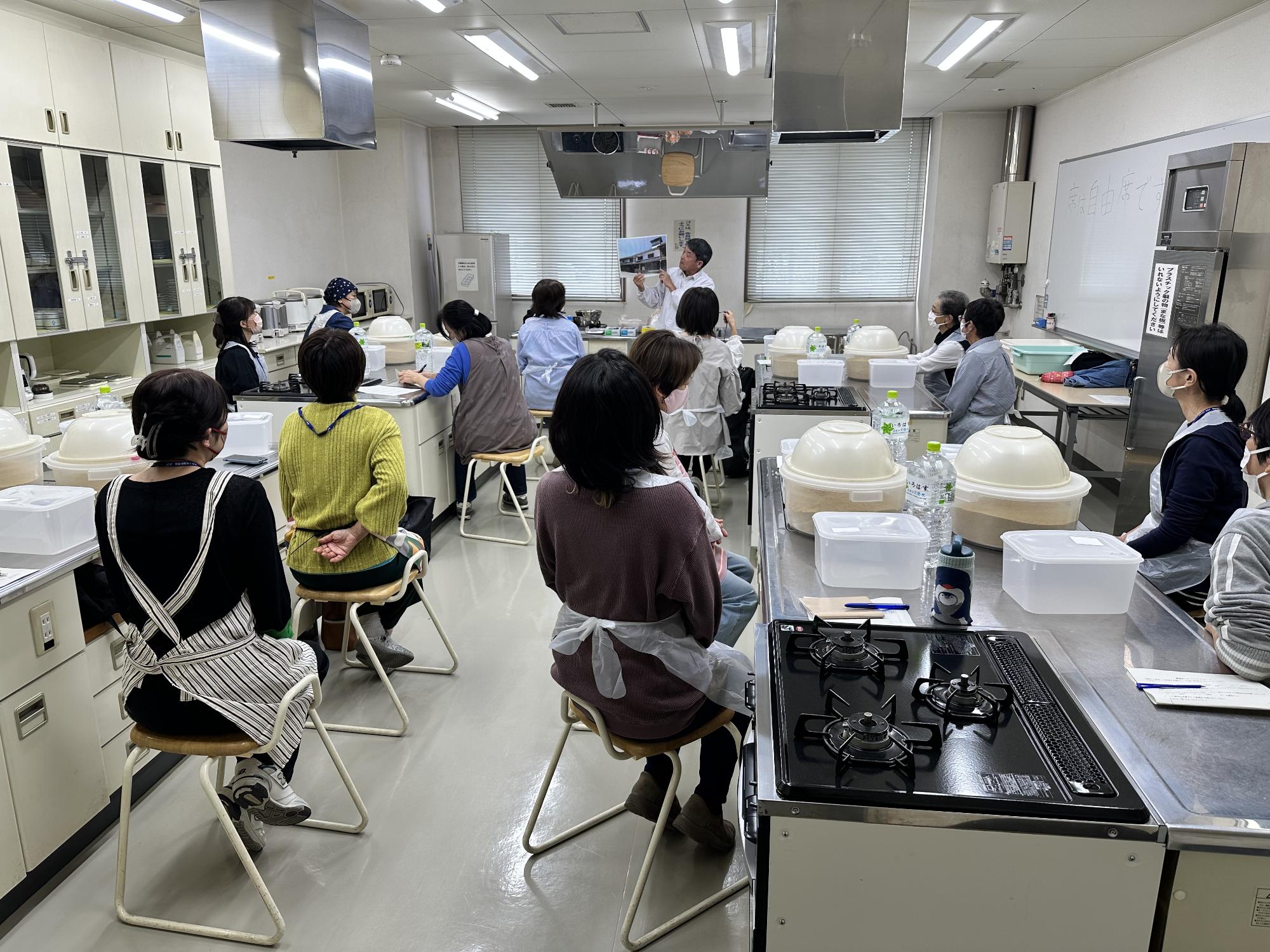 短期講座「漬物屋直伝!ぬか床造り講座~今日から始めるぬか漬け生活~」が開催されました。講師は、ぬか床造り職人の中野弘毅先生です。自宅でぬか床を作る、育てるコツを、老舗漬物店の職人として40年の経験を持つ講師が丁寧に教えてくださりました。自分で作ったぬか床はそのまま容器に入れてお持ち帰りいただきました。