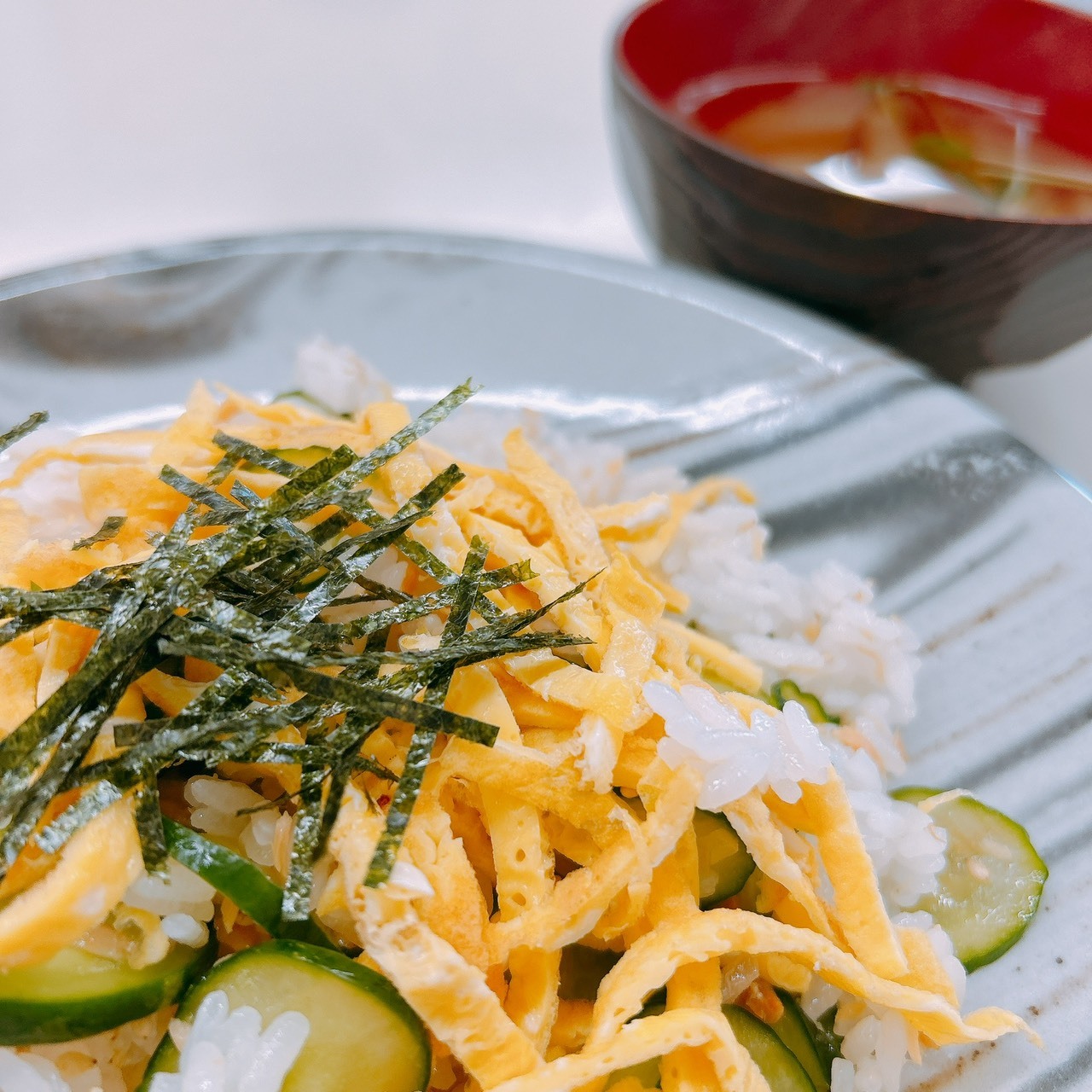 第4回(7月31日) 「和食 市販の調味料を使った料理」 きゅうりと鮭のちらし寿司、ナスとピーマンの煮びたし、吸い物、水羊羹