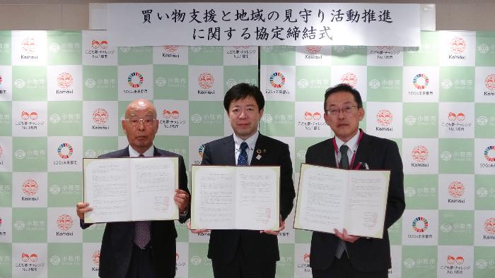 小牧市とマックスバリュ東海株式会社及び小牧市社会福祉協議会は、買い物に困る市民の方の生活支援と地域の見守り活動を推進することを目的として、協定を締結しました。