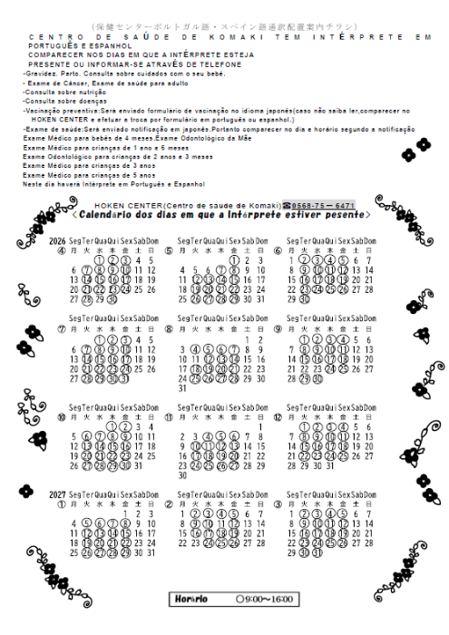 スペイン語・ポルトガル語通訳出勤日(令和8年度)