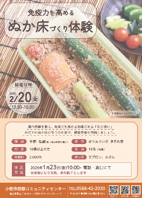 免疫力を高めるぬか床づくり体験(西部コミュニティセンター)