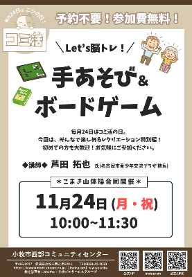 コミ活「Let’脳トレ!手あそび&ボードゲーム」(西部コミュニティセンター)