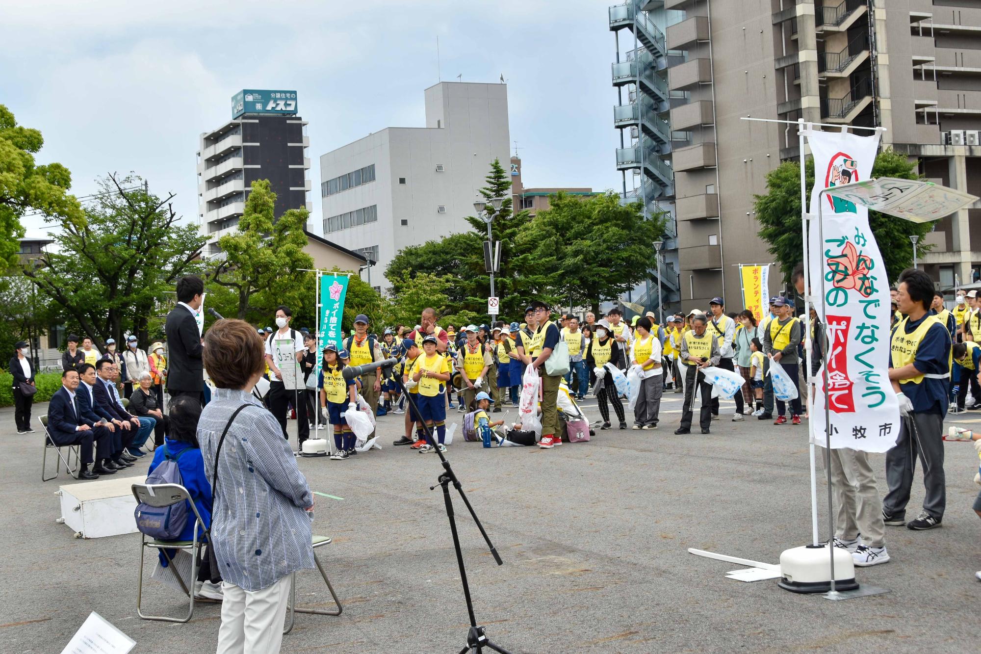 令和7年5月31日に、小牧市快適で清潔なまちづくり協議会と市の共催で、「ごみ散乱防止市民行動の日~小牧まち美化ウォーク~」を開催し、地元住民、企業、ボランティア団体など、約600人が参加しました。