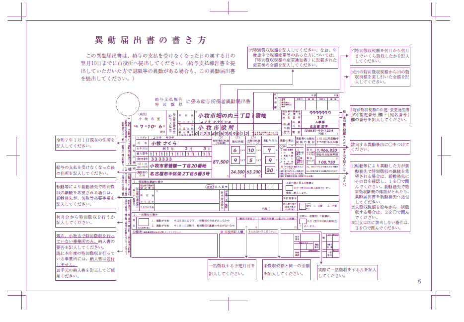 特別徴収に係る給与所得者異動届出書
